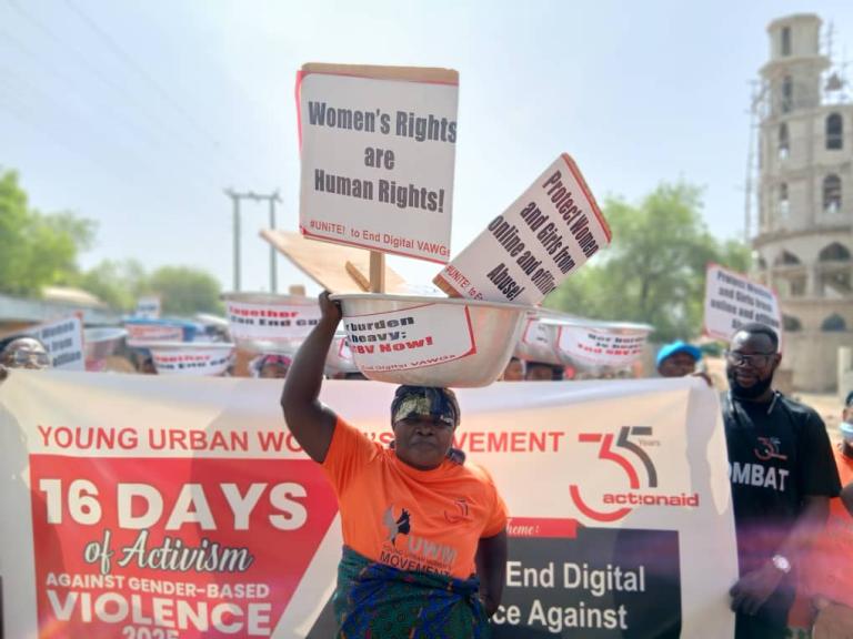 In line with this year’s theme, “Unite to end digital violence against women and girls”, AAG social movements organised a basin carrying route march amid traditional drumming and dancing on Wednesday 10th December 2025 in Bolgatanga in the Upper East region in northern Ghana to draw public attention to the heavy burdens women continue to bear because of entrenched gender roles, as well as the rising issues of violence experienced in digital spaces.